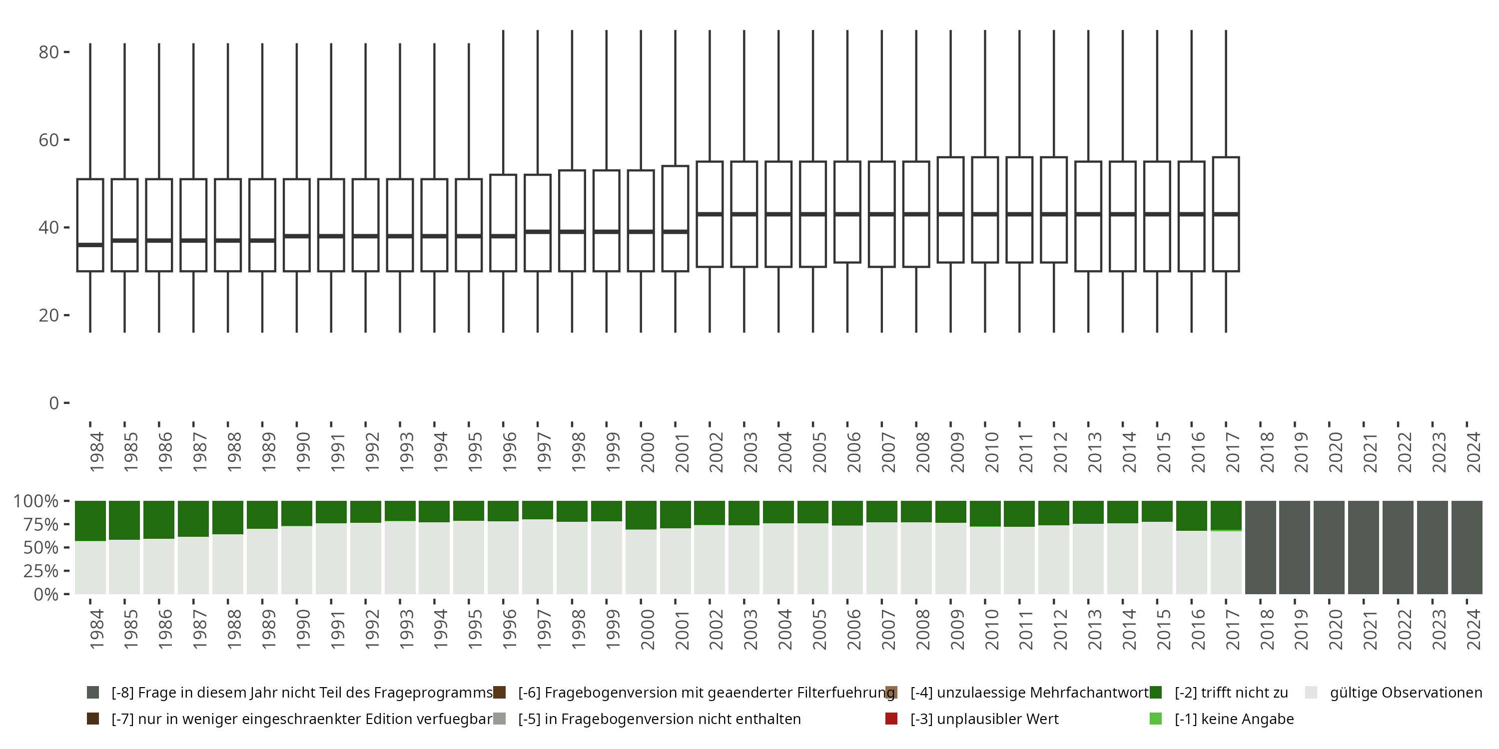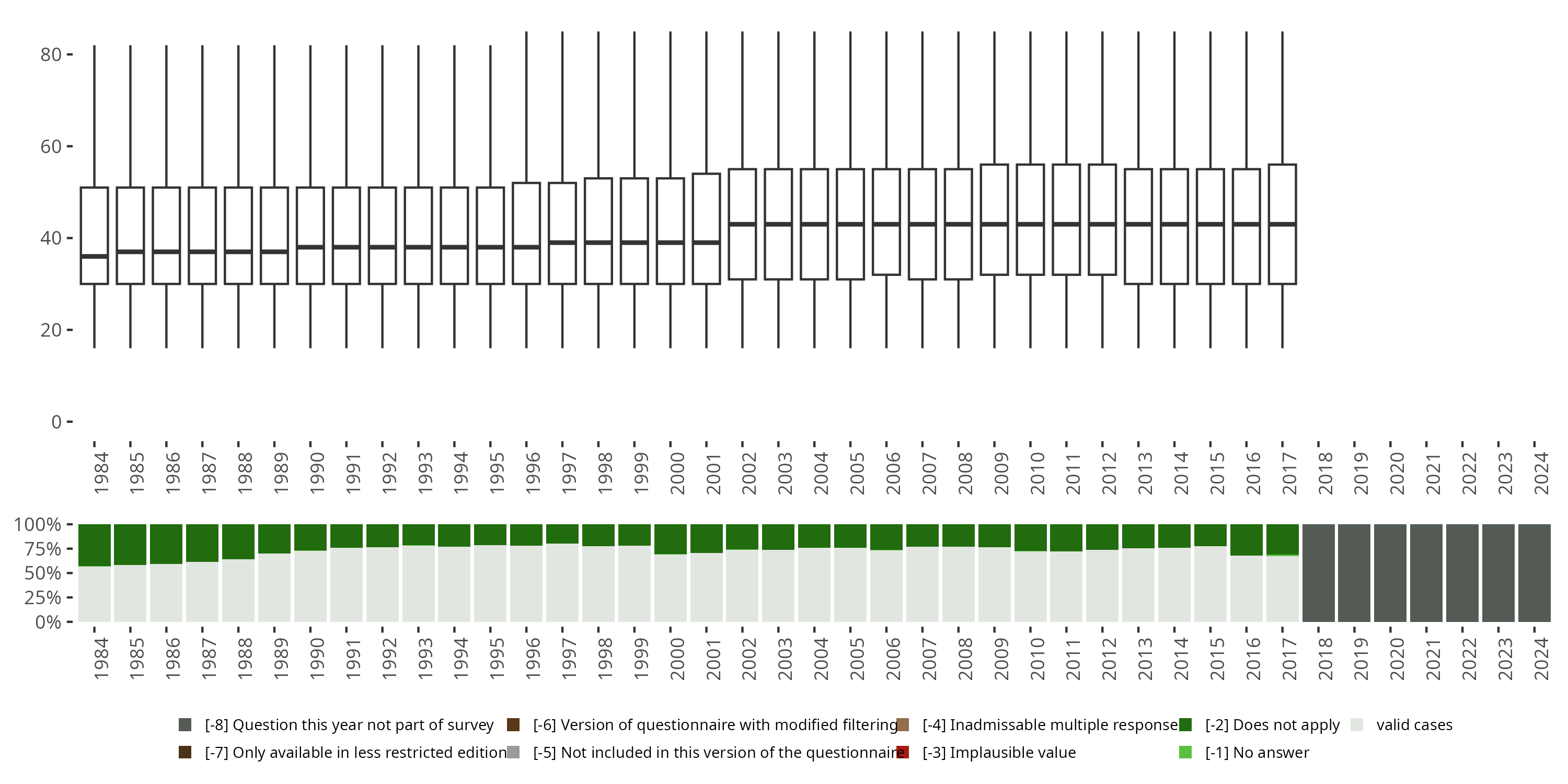 | -8 | [-8] Question this year not part of survey | [-8] Frage in diesem Jahr nicht Teil des Frageprogramms |